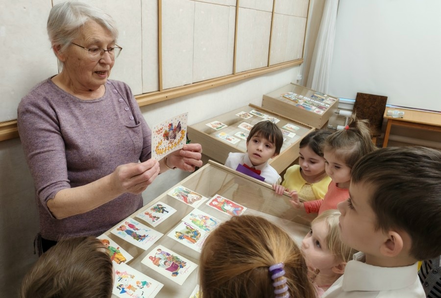 Затем в выставочном зале познакомились с музейной коллекцией советских открыток, посвященных 8 марта. Тематические подборки «Поздравляют дети», «Герои сказок и мультфильмов» на открытках, посвященных Международному женскому дню, вызвали большой интерес и улыбки у детей и взрослых.
