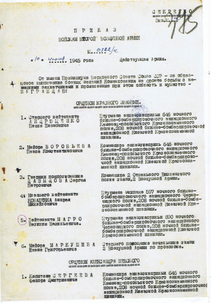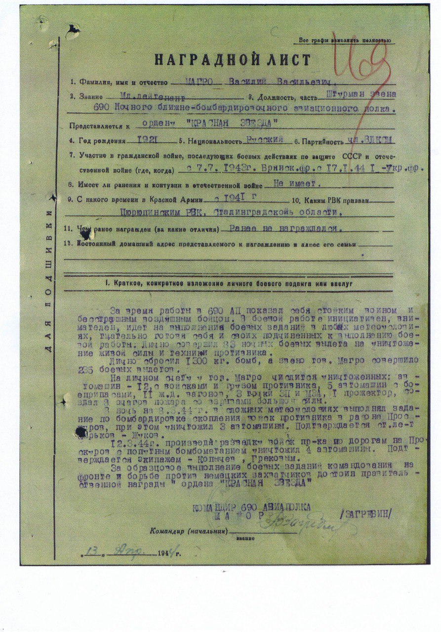 Магро Василий Васильевич родился 19.01.1921г. в селе Ириновка Цурюпинского р-на Павлодарской области. В школе учился в городе Татарске НСО, по окончании 9 класса ушел добровольцем в армию.
