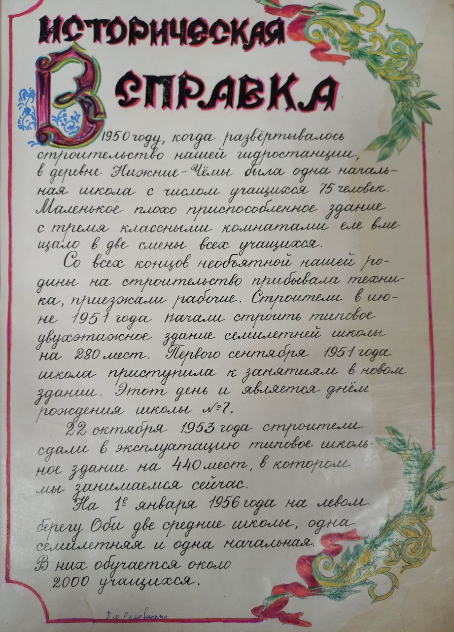22 октября 1953 года строители сдали в эксплуатацию типовое здание восьмилетней школы №7 (ул.Приморская, 3) на 440 мест и начался перевод учащихся из переполненной школы №11 в эту школу. В 1958 году приказом Бердского ГОРОНО школа №7 перешла в распоряжение Советского районного отдела народного образования г.Новосибирска и получила статус средней школы №119.